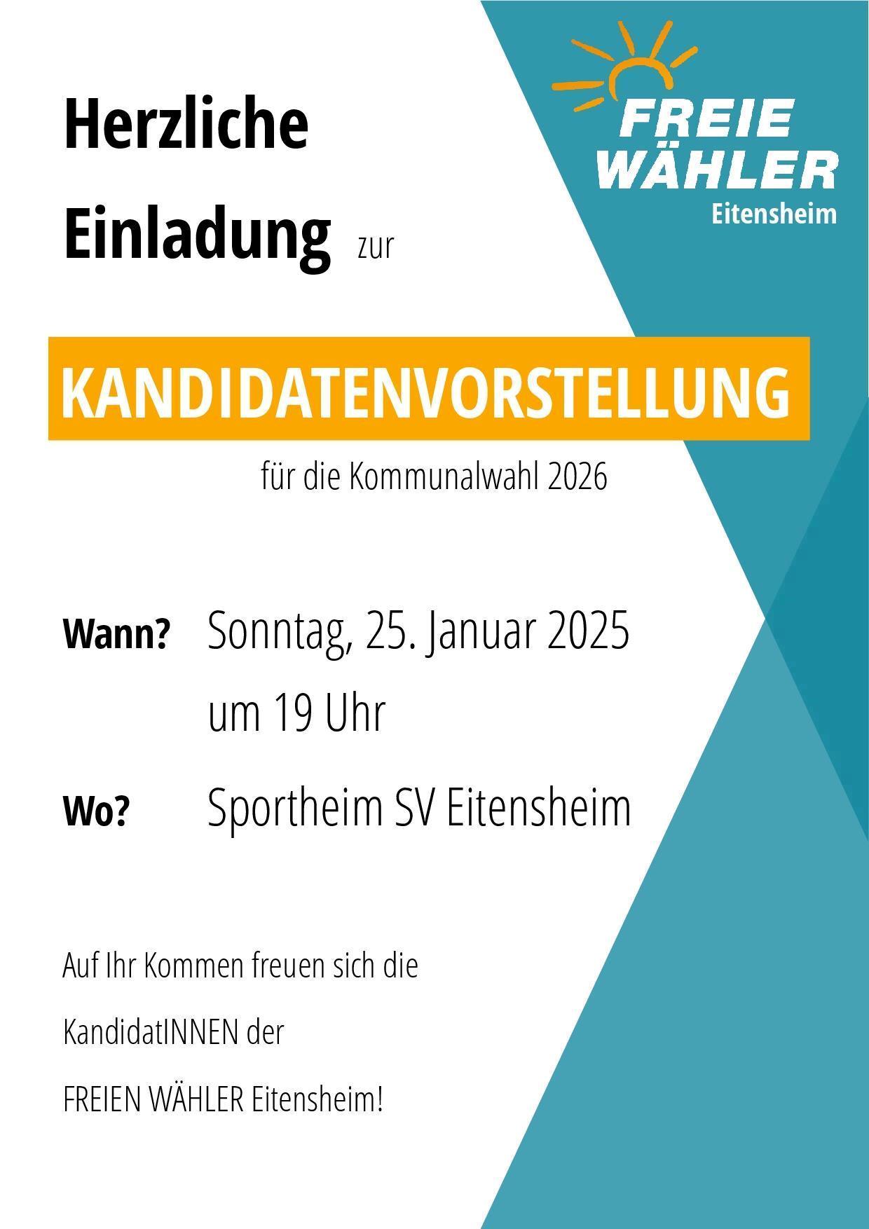 Herzliche Einladung zur Kandidatenvorstellung für die Kommunalwahl 2026.